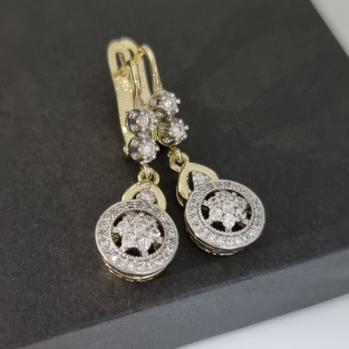 Серьги длинные подвески ювелирная бижутерия Итальянское золото (покрытие желтое 14к), вставка: фианит, цвет: прозрачный, арт.217.191