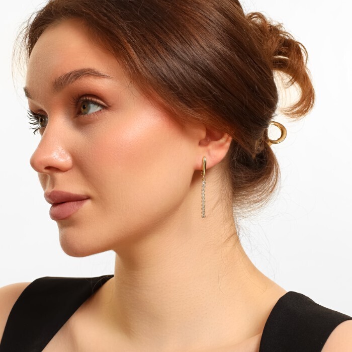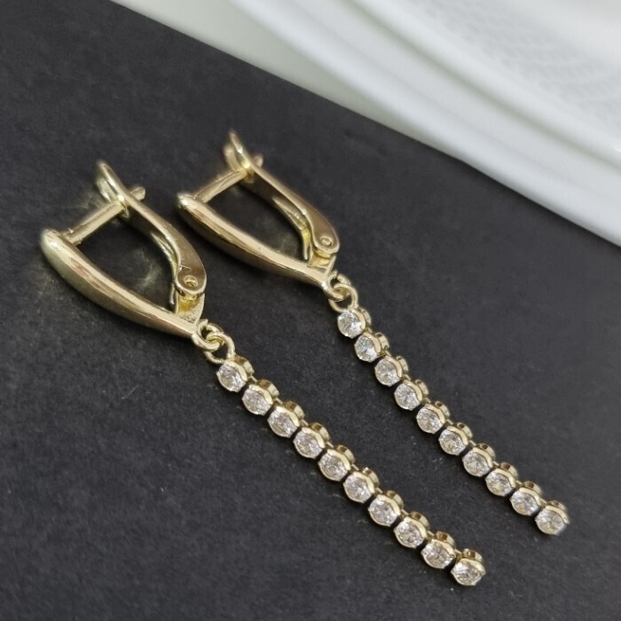 Серьги длинные подвески ювелирная бижутерия Итальянское золото (покрытие желтое 14к), вставка: фианиты, цвет: прозрачный, арт.216.207