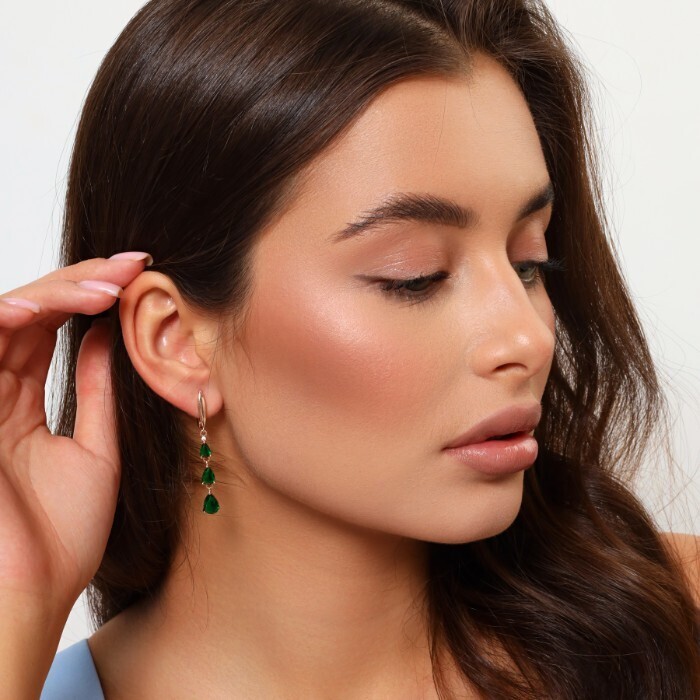 Серьги длинные подвески ювелирная бижутерия коллекция "Дубай", покрытие позолота, вставка: фианиты, цвет: зеленый, арт.215.316