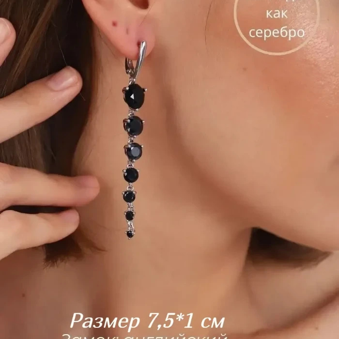 Описание Размер серьги: 7,5*0,9 см. Замок: английский. Вес: 10 гр.