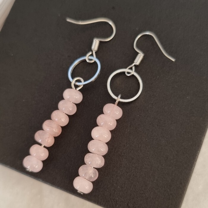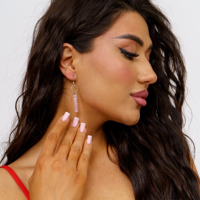 Серьги длинные с натуральным камнем Розовый кварц, 1045, Уценка, арт.08.2349
