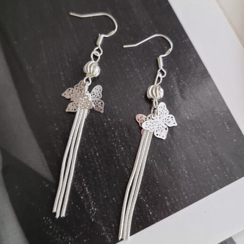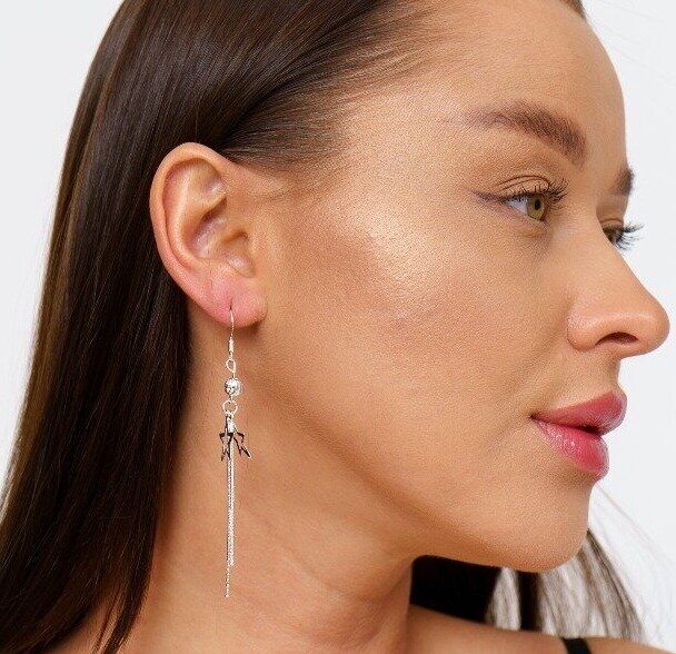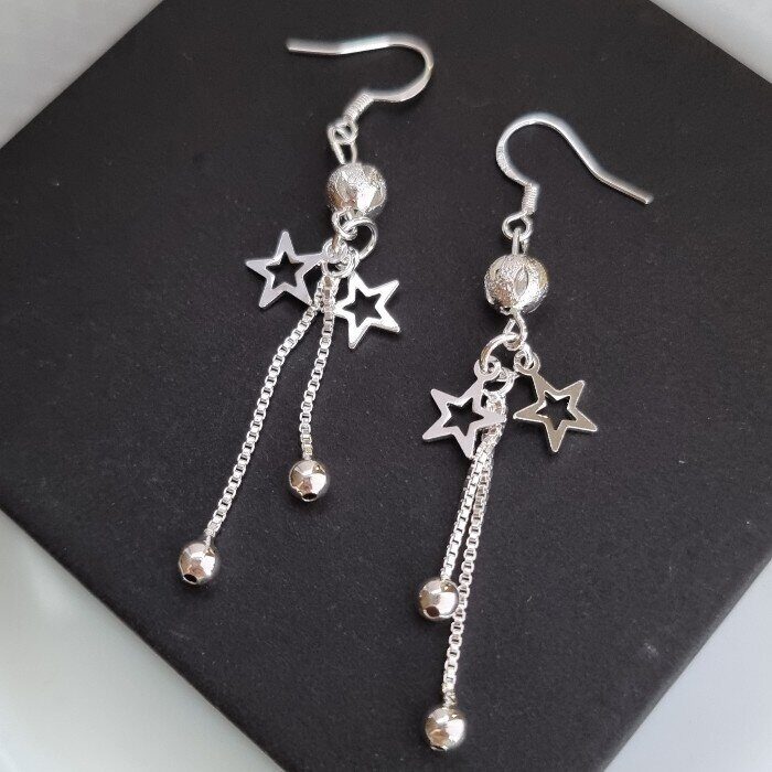 Серьги длинные висячие с шариками и звездами, покрытие посеребрение, №013029, арт. 001.320
