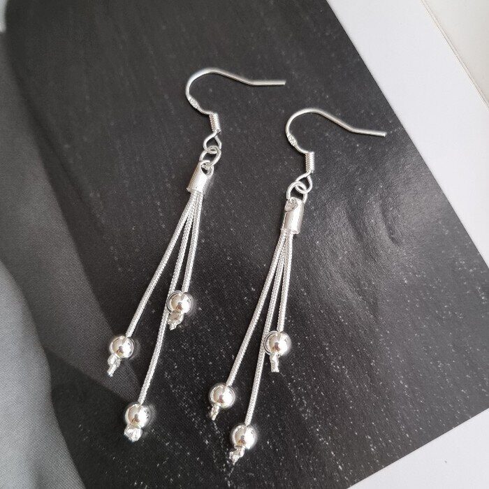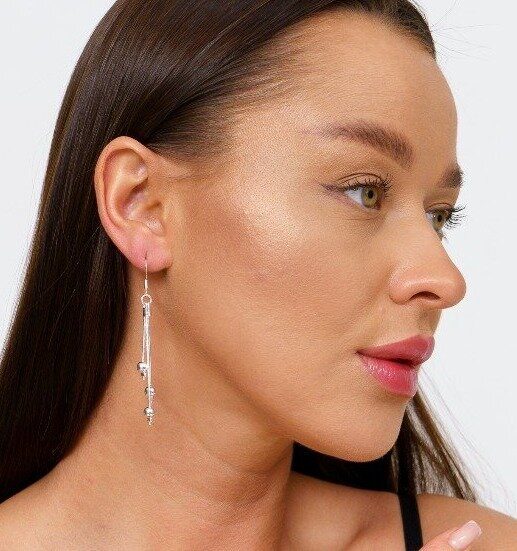 Серьги длинные висячие с шариками, покрытие посеребрение, №013029, арт. 001.318