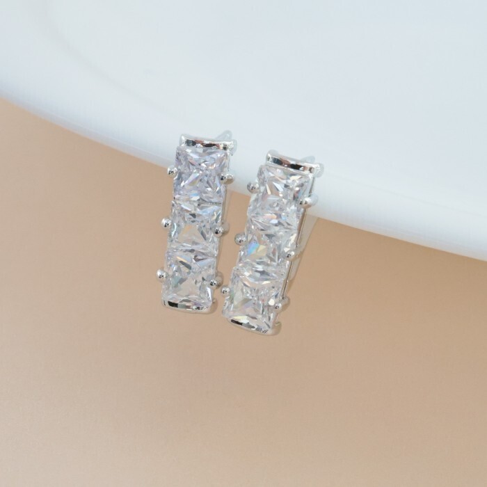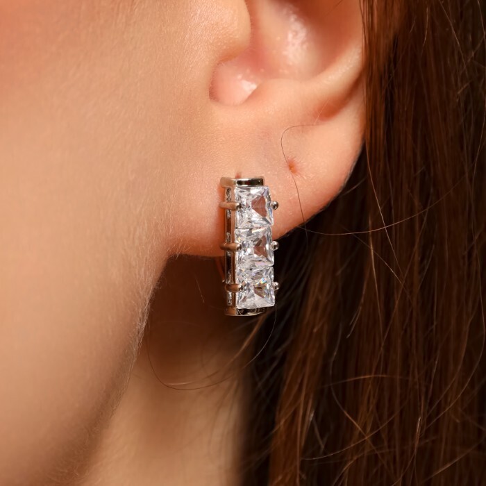 Серьги дорожка ювелирная бижутерия, покрытие посеребрение, вставка: фианиты, цвет: прозрачный, арт.213.605