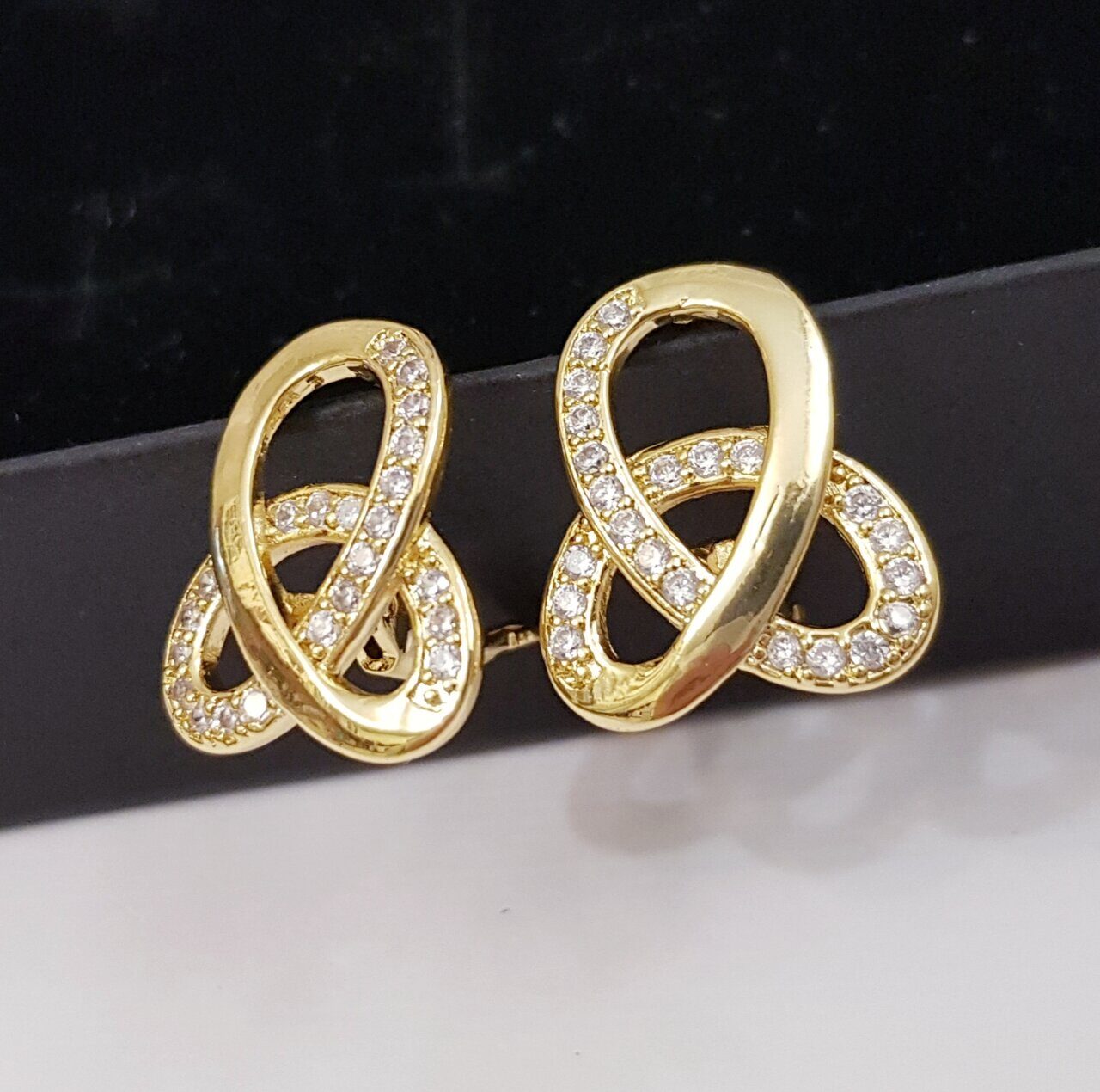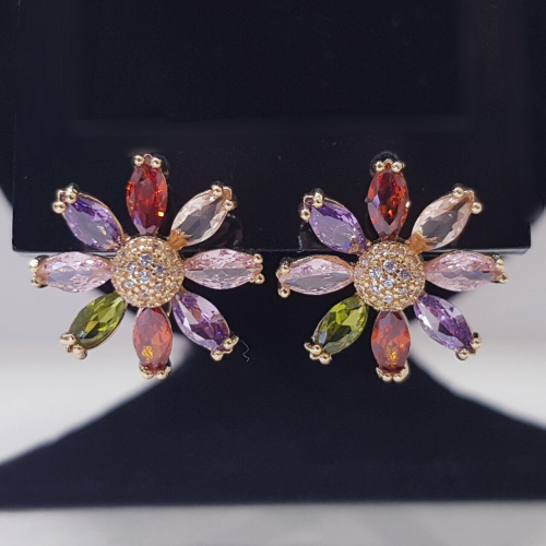 Описание Изящные серьги удачно завершат ваш романтичный образ. Размер: 2*1,5 см. Замок: английский. Материал: металл, стразы. Вес: 7 гр.