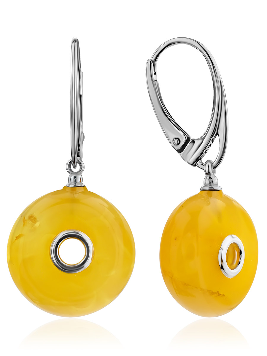 Серьги «Фортуна» из натурального балтийского янтаря на французской швензе