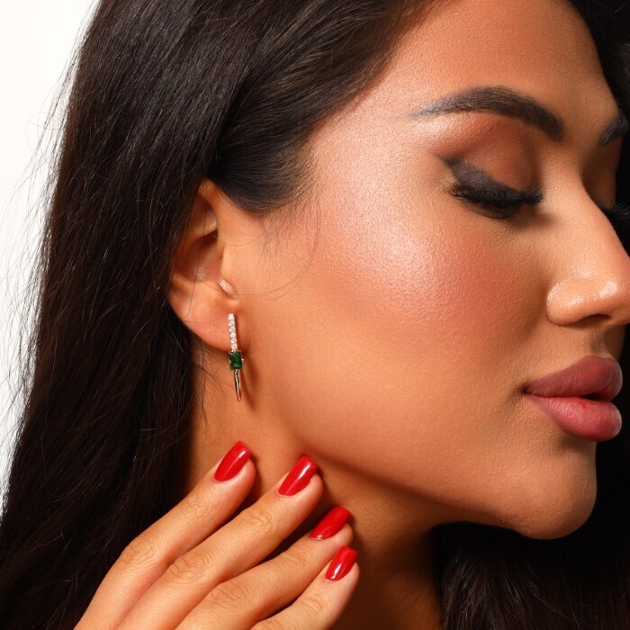 Серьги галочки ювелирная бижутерия Дубайское золото, с покрытием позолотой, вставка: фианит, цвет: зеленый и прозрачный, арт.314.015