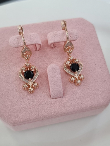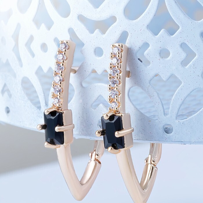 Серьги галочки ювелирная бижутерия коллекция "Дубай", покрытие позолота, вставка: фианиты, цвет: прозрачный и черный, арт.214.978