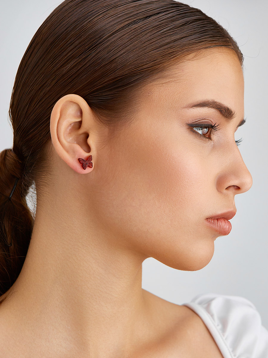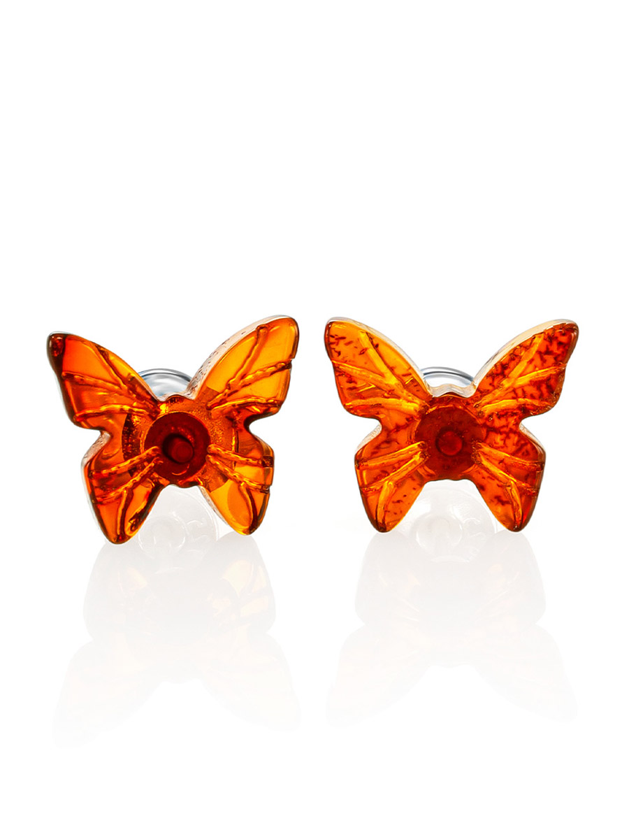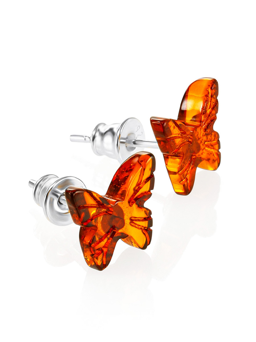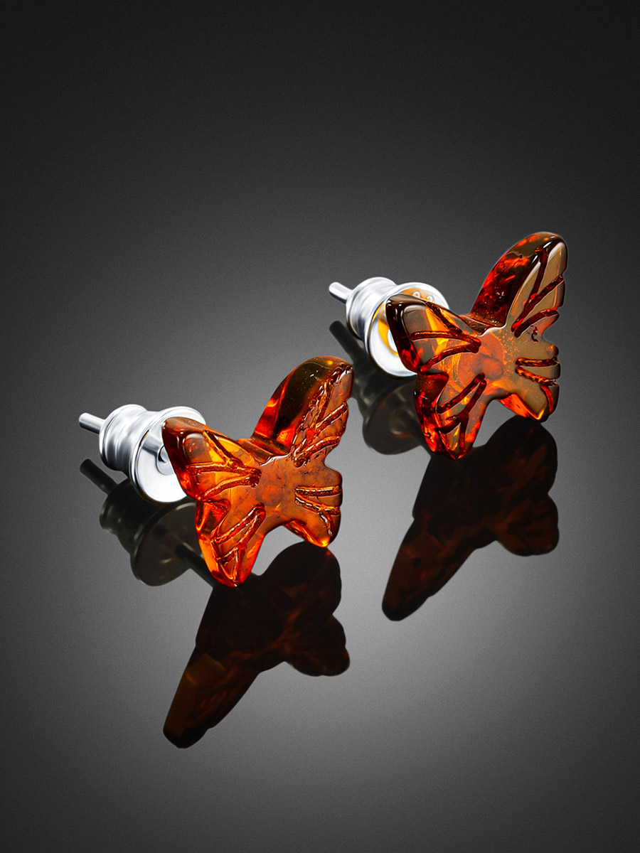 Серьги-гвоздики из натурального балтийского янтаря коньячного цвета «Бабочки» из коллекции «Апрель»
