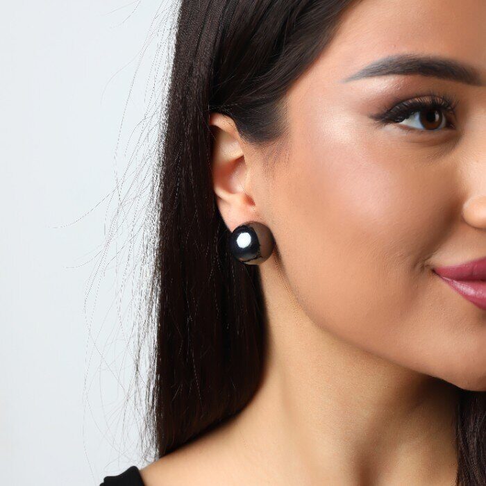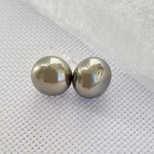 Серьги гвоздики крупные жемчужинки, цвет: серый переливающийся, арт.001.624