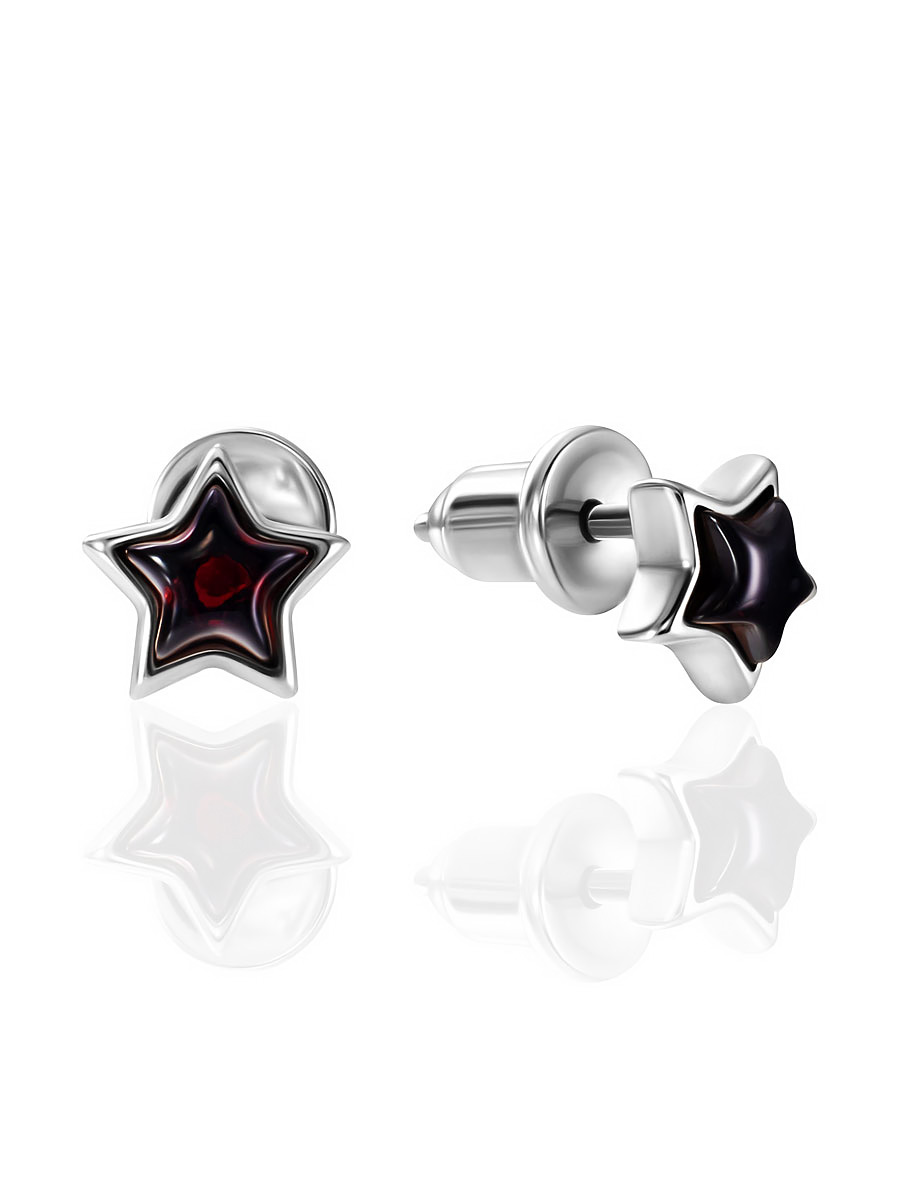 Серьги-гвоздики с вишнёвым янтарём «Суперстар»