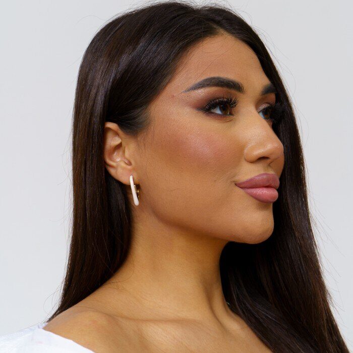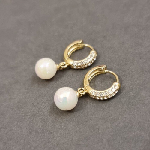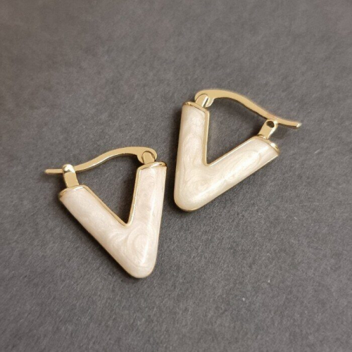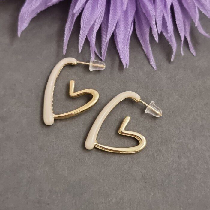 Серьги гвоздики сердца ювелирная бижутерия коллекция "Дубай" позолота, цвет вставки: молочный, арт. 001.279