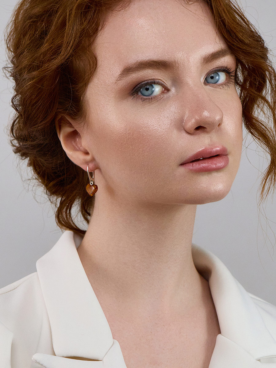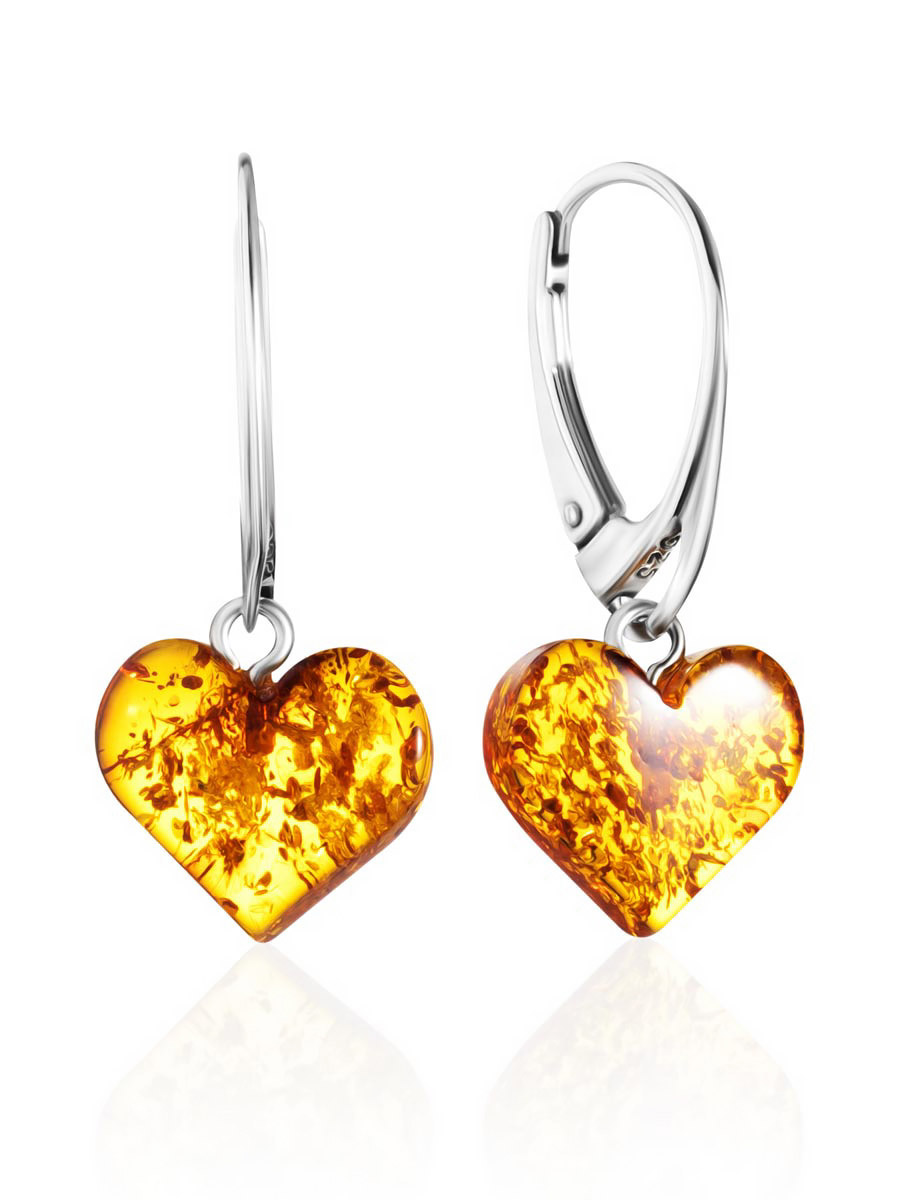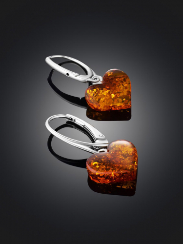 Серьги из цельного прозрачного янтаря коньячного цвета «Сердечки»