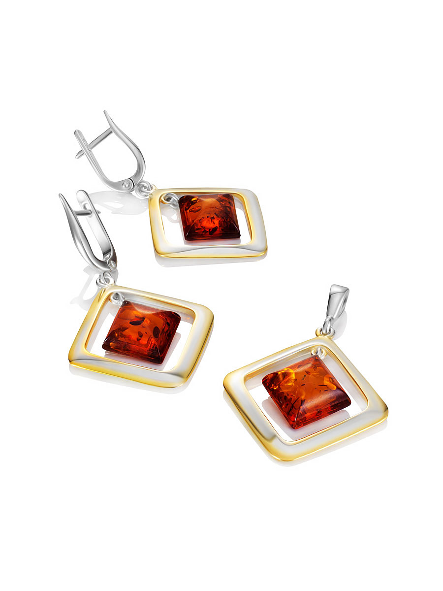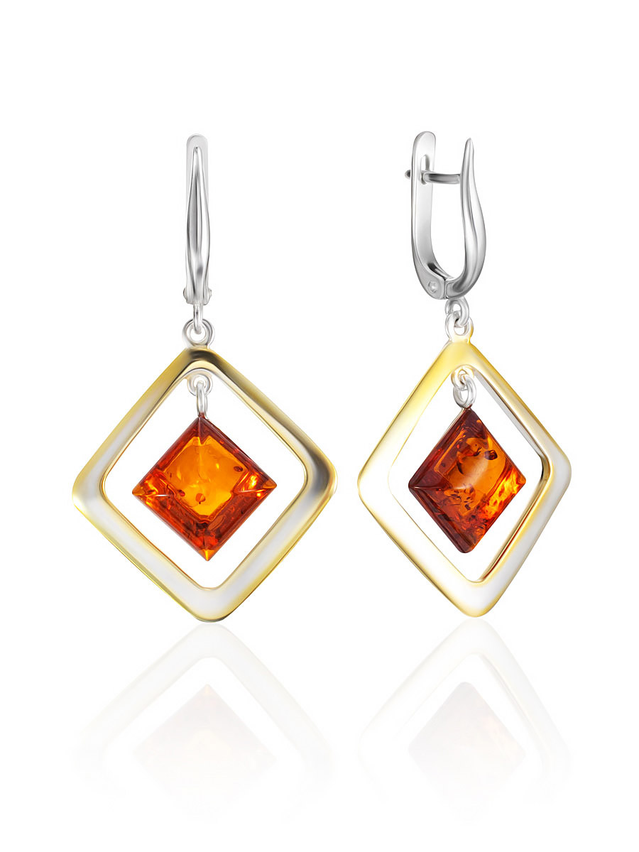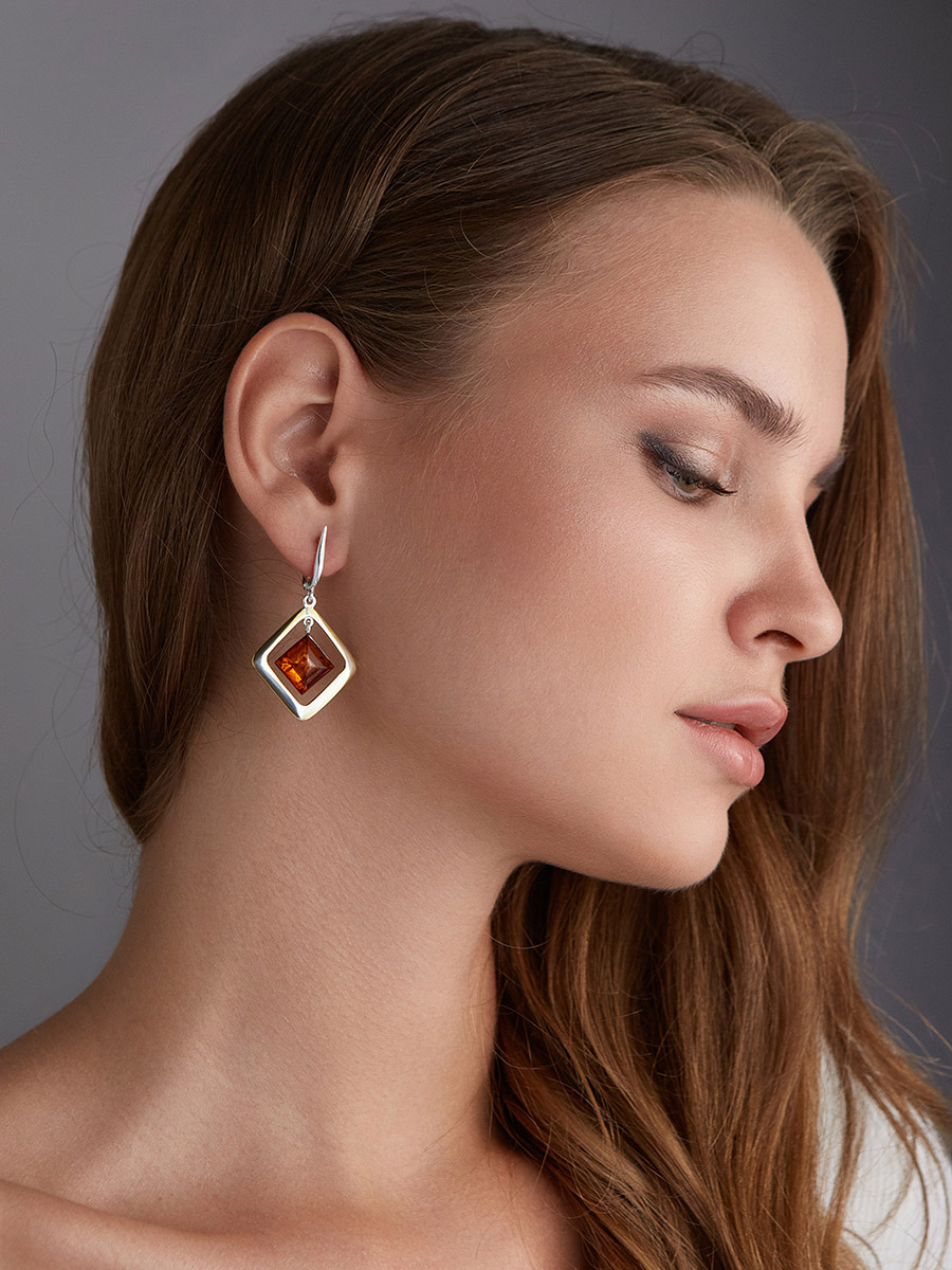 Серьги из коньячного янтаря в позолоченной оправе «Челси»