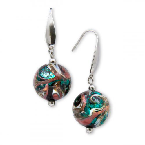 Серьги изготовлены из муранского стекла и гипоаллергенной ювелирной стали, что очень важно для людей с чувствительной кожей. Металл не темнеет и не подвергается воздействиям окружающей среды, надолго обеспечивая красивый внешний вид изделия. Длина серег - 11,5 см. Диаметр стеклянного шарика - 1 см. Вес - 6 гр.
