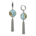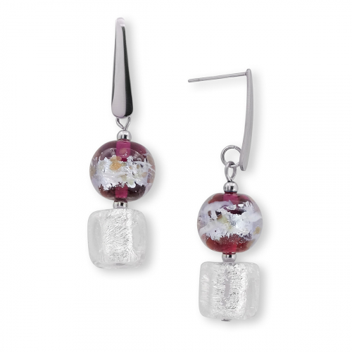 Серьги изготовлены из муранского стекла и гипоаллергенной ювелирной стали, что очень важно для людей с чувствительной кожей. Металл не темнеет и не подвергается воздействиям окружающей среды, надолго обеспечивая красивый внешний вид изделия. Длина серег - 4,5 см. Длина стеклянной бусины - 2,5 см.  Вес обеих серег - 8 гр.