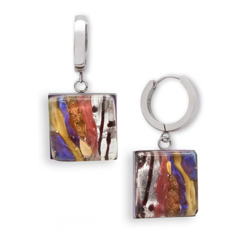 Серьги изготовлены из муранского стекла и гипоаллергенной ювелирной стали, что очень важно для людей с чувствительной кожей. Металл не темнеет и не подвергается воздействиям окружающей среды, надолго обеспечивая красивый внешний вид изделия. Длина серег - 4 см. Диаметр стеклянного шарика - 1,5 см.  Вес обеих серег - 11 гр.