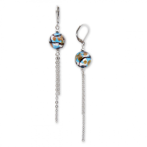 Серьги изготовлены из муранского стекла и гипоаллергенной ювелирной стали, что очень важно для людей с чувствительной кожей. Металл не темнеет и не подвергается воздействиям окружающей среды, надолго обеспечивая красивый внешний вид изделия. Длина серег - 10 см. Диаметр стеклянных шариков - 1 и 1,5 см. Вес - 15 гр.