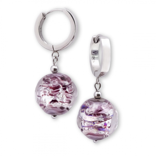 Серьги изготовлены из муранского стекла и гипоаллергенной ювелирной стали, что очень важно для людей с чувствительной кожей. Металл не темнеет и не подвергается воздействиям окружающей среды, надолго обеспечивая красивый внешний вид изделия. Длина серег - 4 см. Диаметр стеклянного шарика - 1,5 см. Вес - 14 гр.