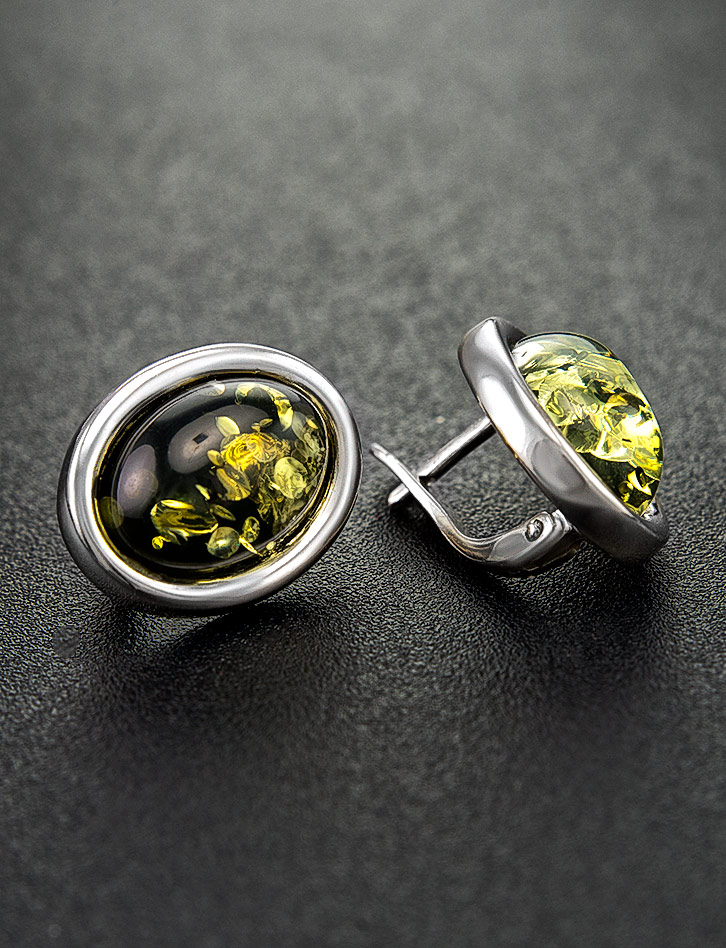 Серьги из натурального балтийского янтаря зелёного цвета «Годжи»