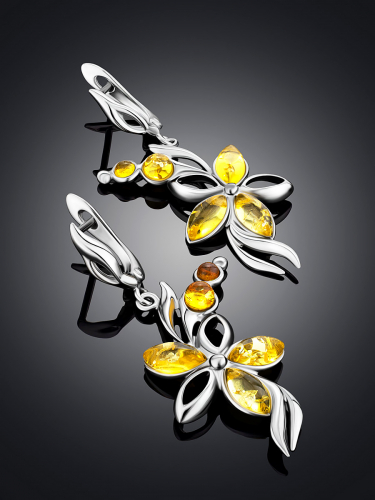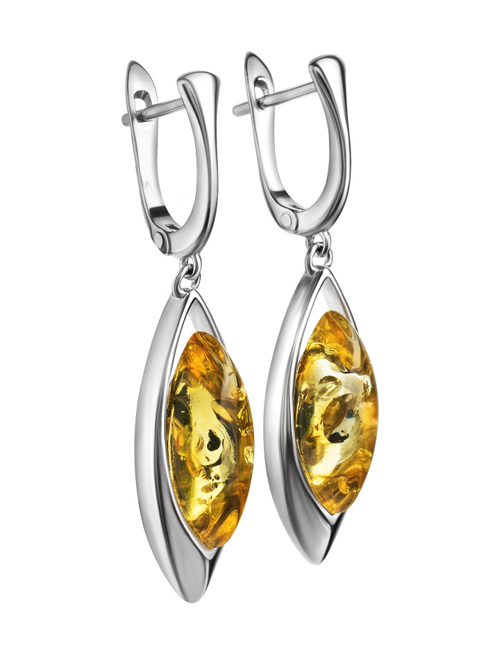 Серьги из натурального янтаря красивого золотисто-лимонного цвета «Акация»