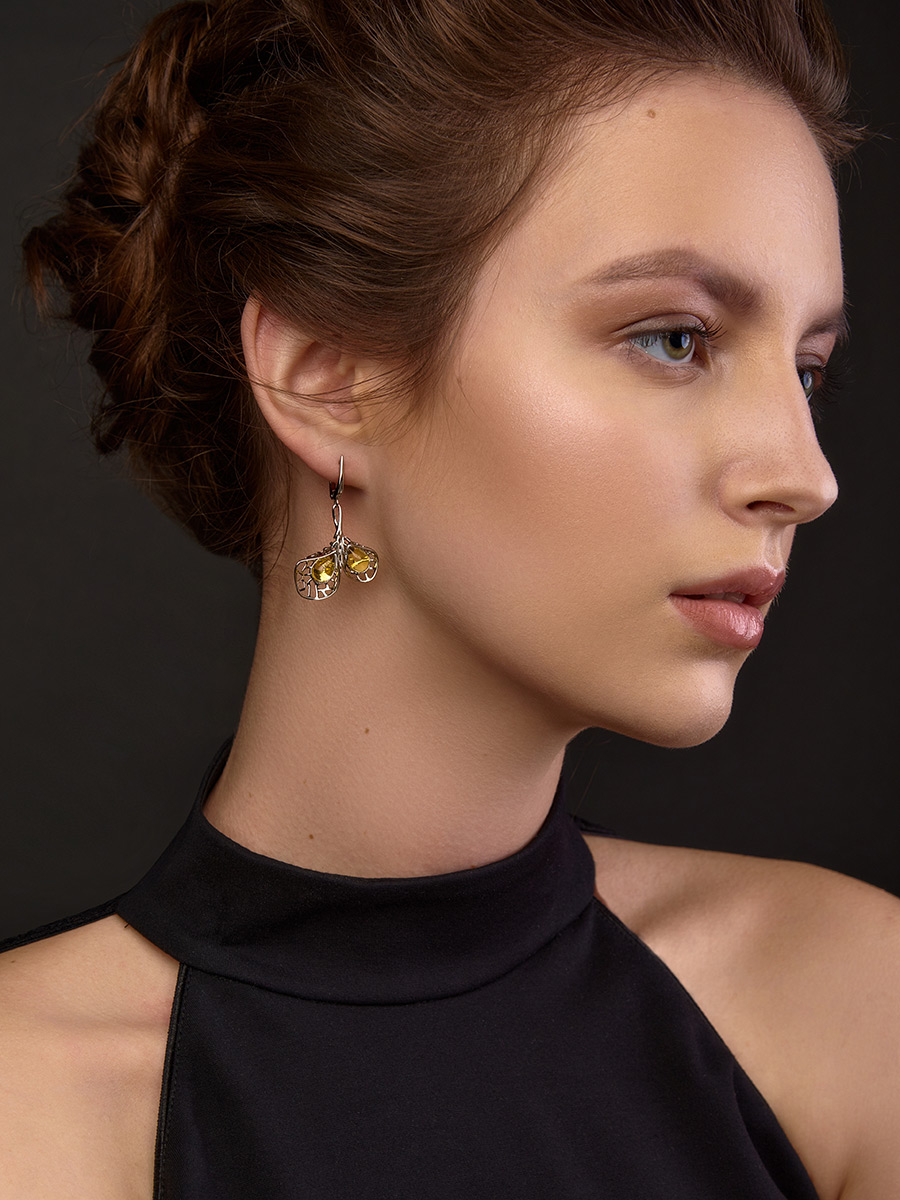 Серьги из натурального янтаря лимонного цвета «Венера»