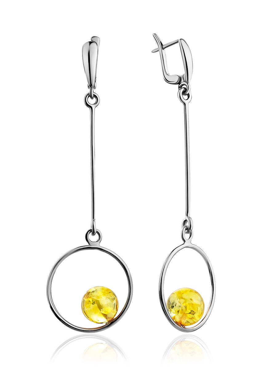 Серьги из натурального янтаря ярко-лимонного цвета «Юпитер»