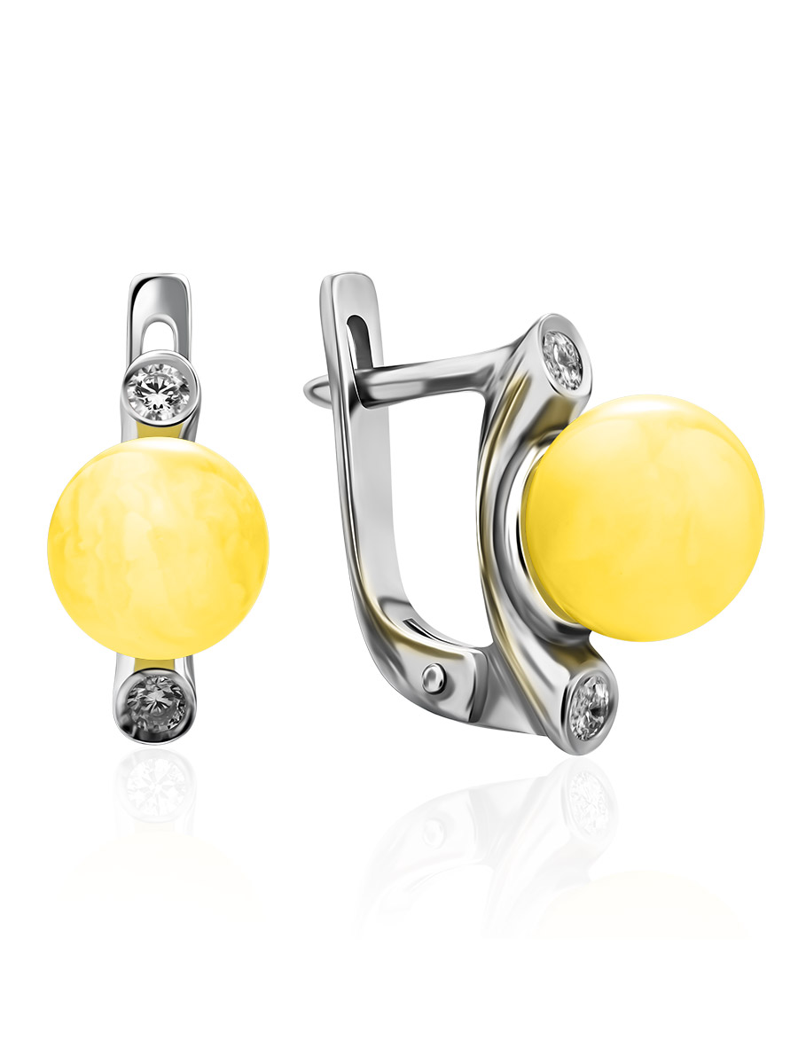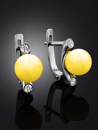 Серьги из натуральным медовым янтарём и фианитами «Фемида»