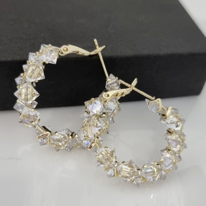 Серьги кольца ювелирная бижутерия Итальянское золото (покрытие желтое 14к), вставка: фианит, цвет: прозрачный, арт.217.195