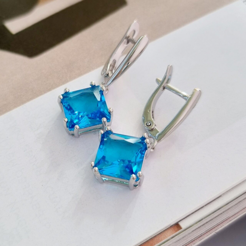 Описание Серьги коллекция "Дубай" покрытие посеребрение, камень синий блестящий. Вид застежки: английский. Размер: 3х1,5 см. Вес: 7 гр.