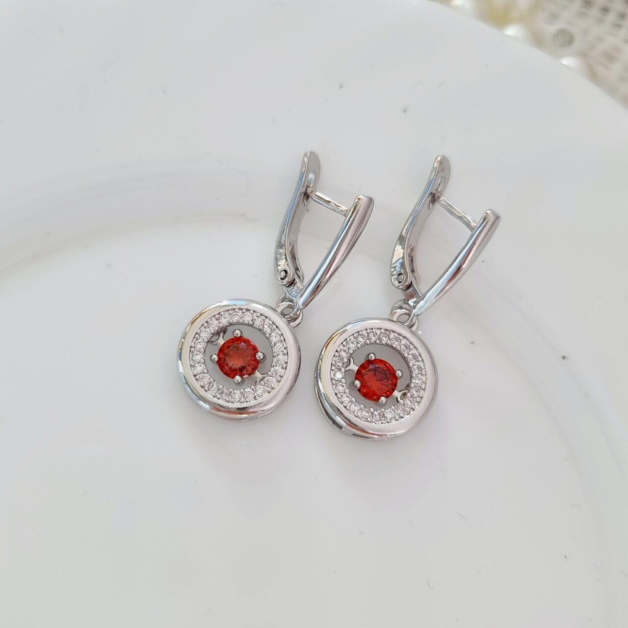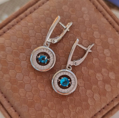 Описание Серьги коллекция "Дубай" покрытие посеребрение, с фианитами, камень оранжевый блестящий. Вид застежки: английский. Размер: 3,2х1,4 см. Вес: 5 гр.