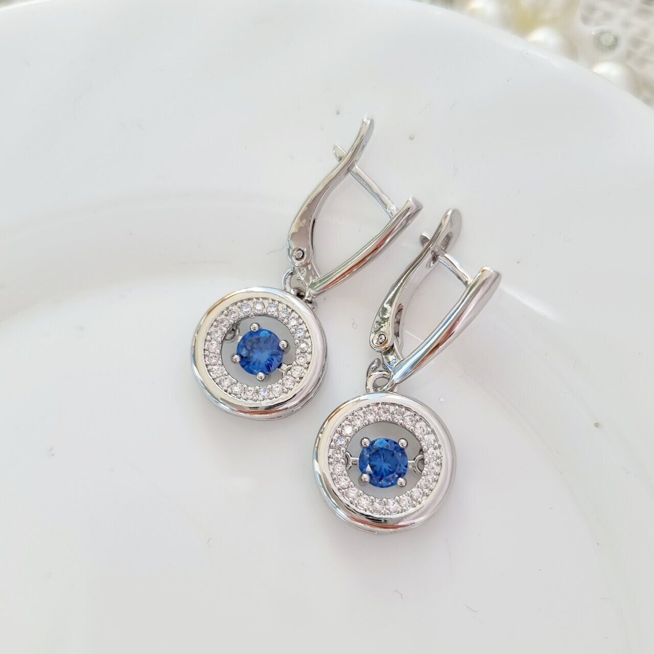 Описание Серьги коллекция "Дубай" покрытие посеребрение, с фианитами, камень синий блестящий. Вид застежки: английский. Размер: 3,2х1,4 см. Вес: 5 гр.