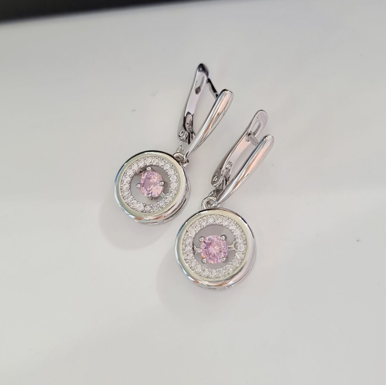 Описание Серьги коллекция "Дубай" покрытие посеребрение, с фианитами, камень розовый блестящий. Вид застежки: английский. Размер: 3,2х1,4 см. Вес: 5 гр.