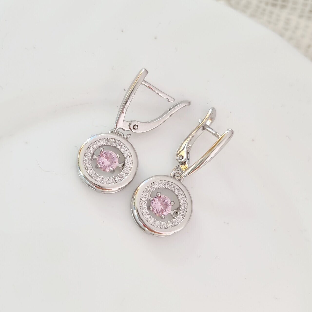 Серьги коллекция "Дубай" покрытие посеребрение, с фианитами, камень розовый блестящий, 60162, арт. 847.323