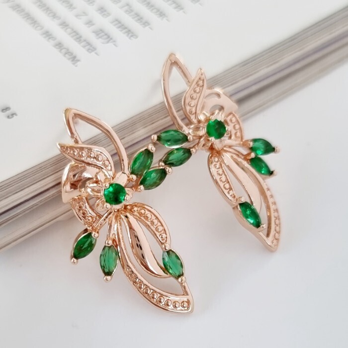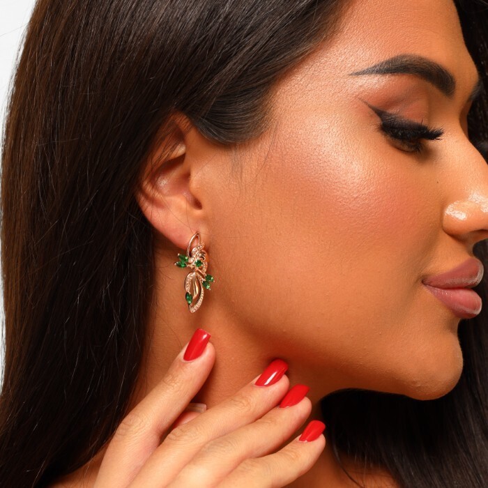 Серьги коллекция "Дубай" покрытие позолота, цвет камня: зеленый, арт.214.822
