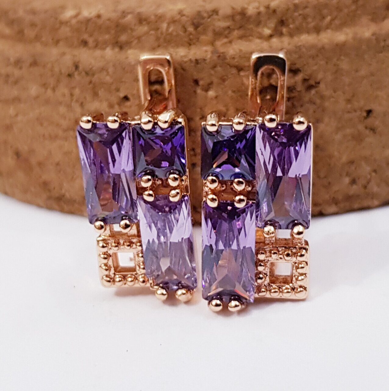 Серьги коллекция "Дубай" покрытие позолота, фиолетовые камни, 128, арт.647.402