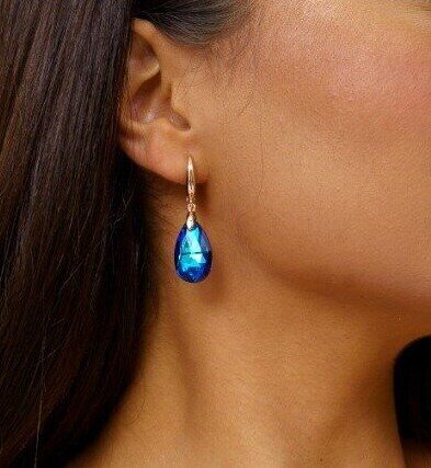 Серьги коллекция "Дубай" покрытие позолота, камень синий переливающийся, 142905, арт.215.069