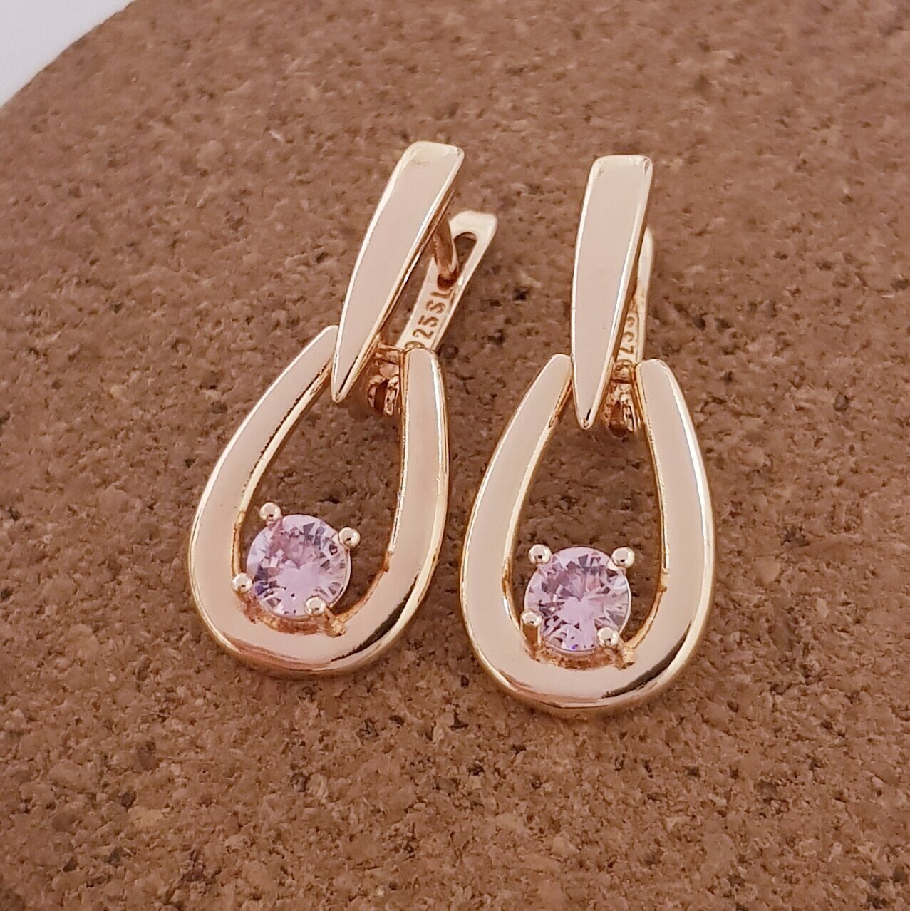 Серьги коллекция "Дубай" покрытие позолота, розовый камень, 351020, арт.647.869