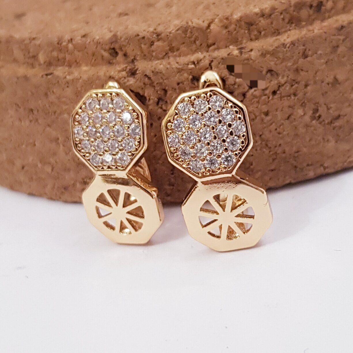 Описание Серьги будут радовать вас долгое время! Прекрасно подойдут на любой праздник, дополнит ваш образ и сделает вас незабываемой. Размер: 1,5*0,7 см. Замок: английский. Материал: металл, фианиты. Вес: 3 гр.