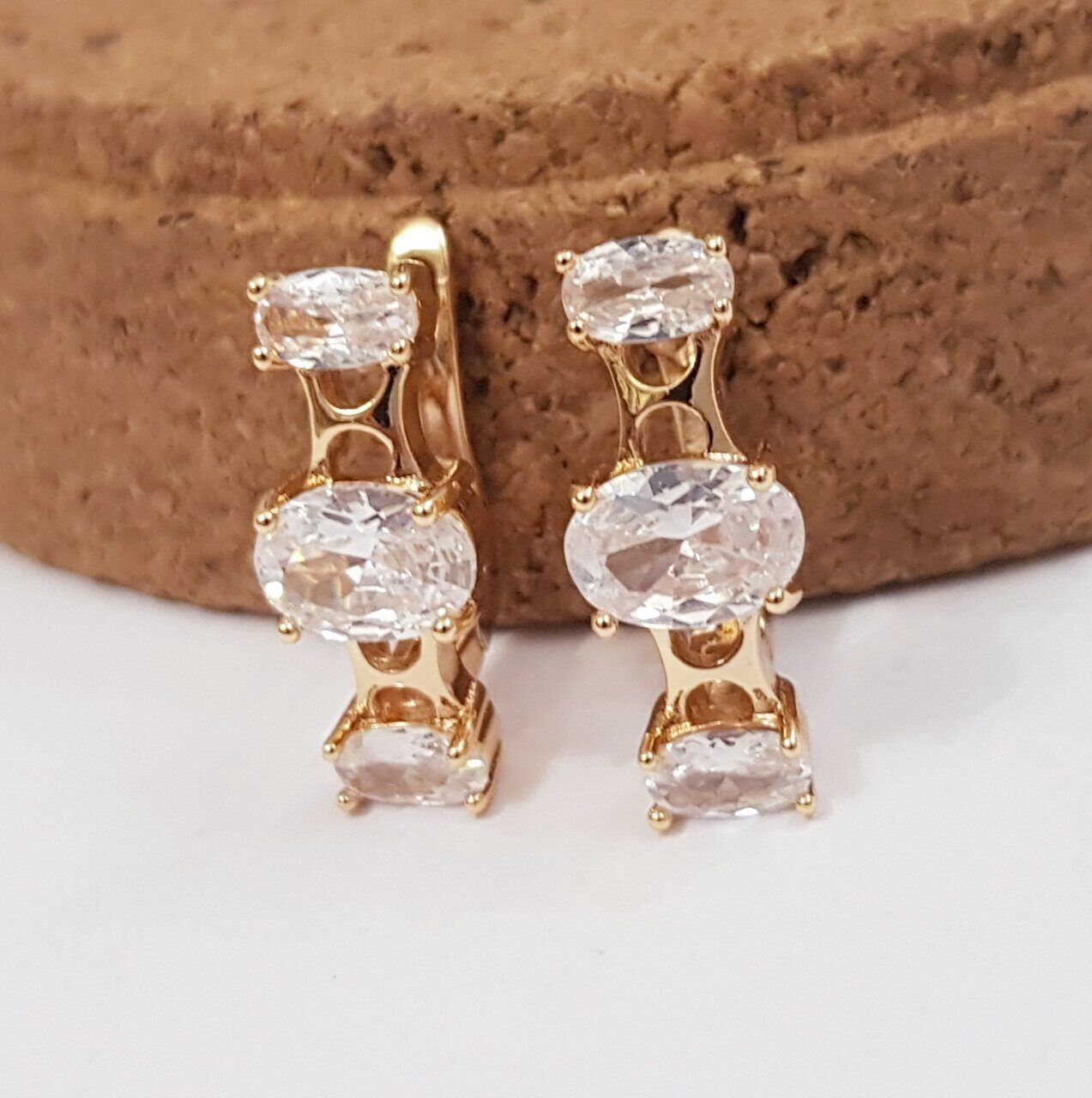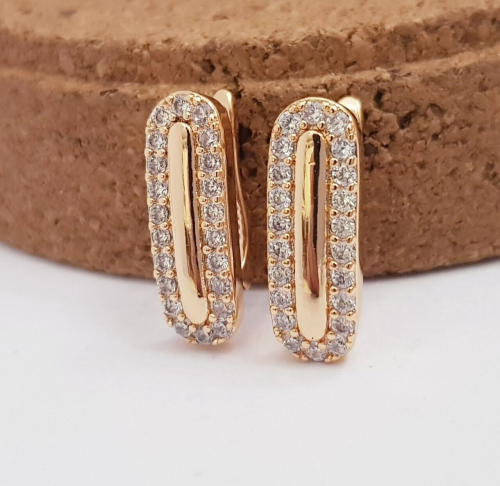 Описание Серьги будут радовать вас долгое время! Прекрасно подойдут на любой праздник, дополнит ваш образ и сделает вас незабываемой. Размер: 1,7*0,6 см. Замок: английский. Материал: металл, фианиты. Вес: 3 гр.