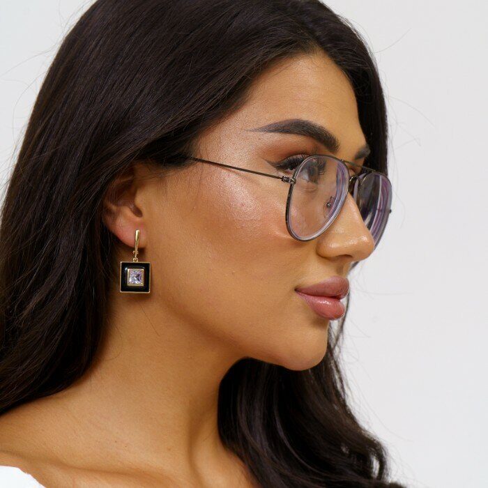 Серьги коллекция "Дубай" покрытие позолота с эмалью, цвет камня: прозрачный, 271491, арт.215.269