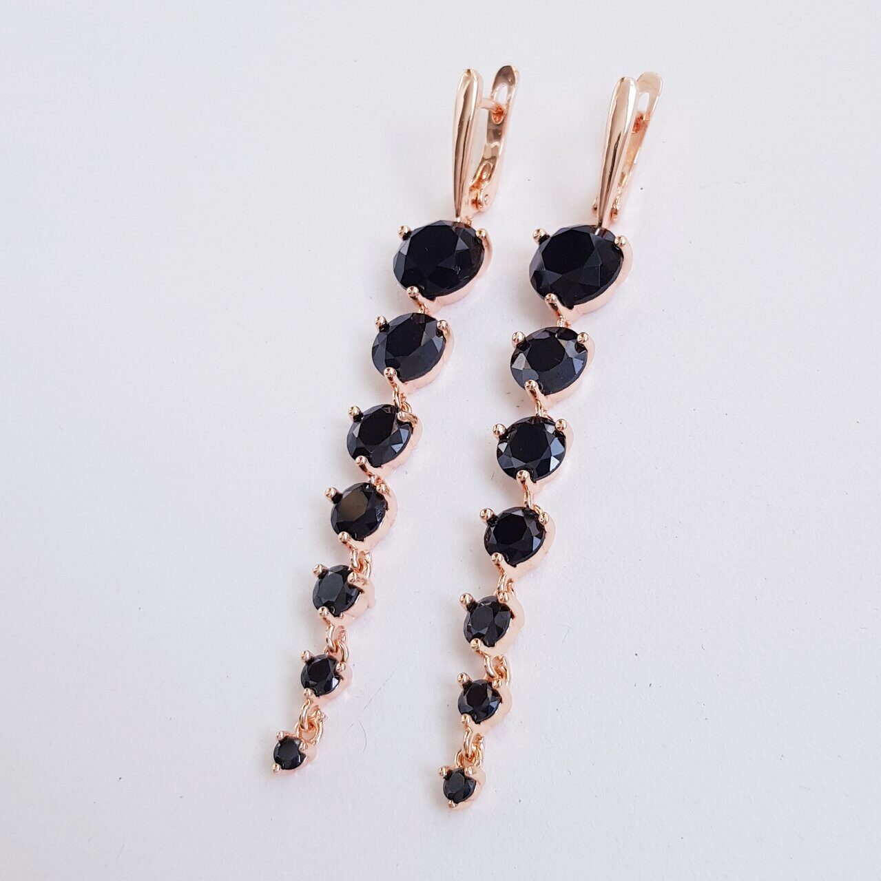 Серьги коллекция "Дубай" покрытие позолота, с фианитами, цвет черный, 281806, арт.215.139