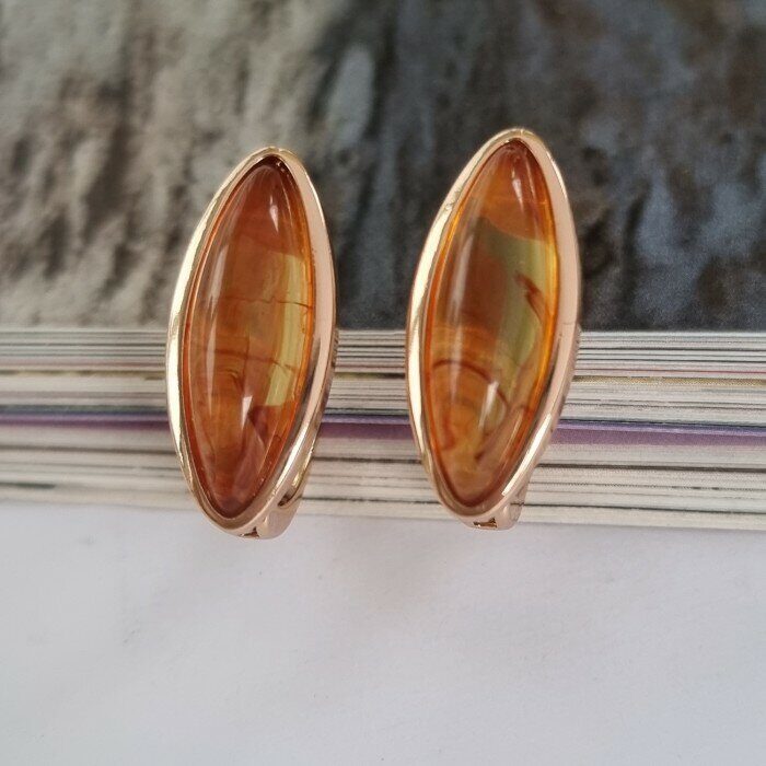 Серьги коллекция "Дубай" покрытие позолота с искуственным янтарем, 452476, Уценка. арт.08.1385
