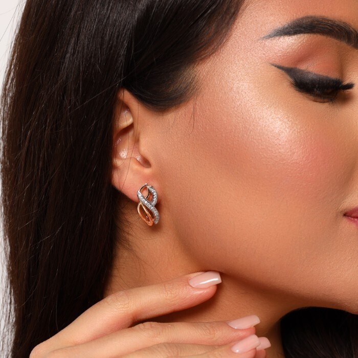 Серьги коллекция "Дубай" покрытие позолота, вставка: фианиты, цвет: прозрачный, арт.214.933