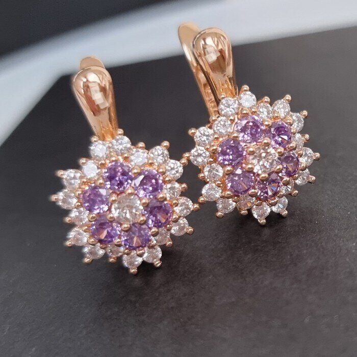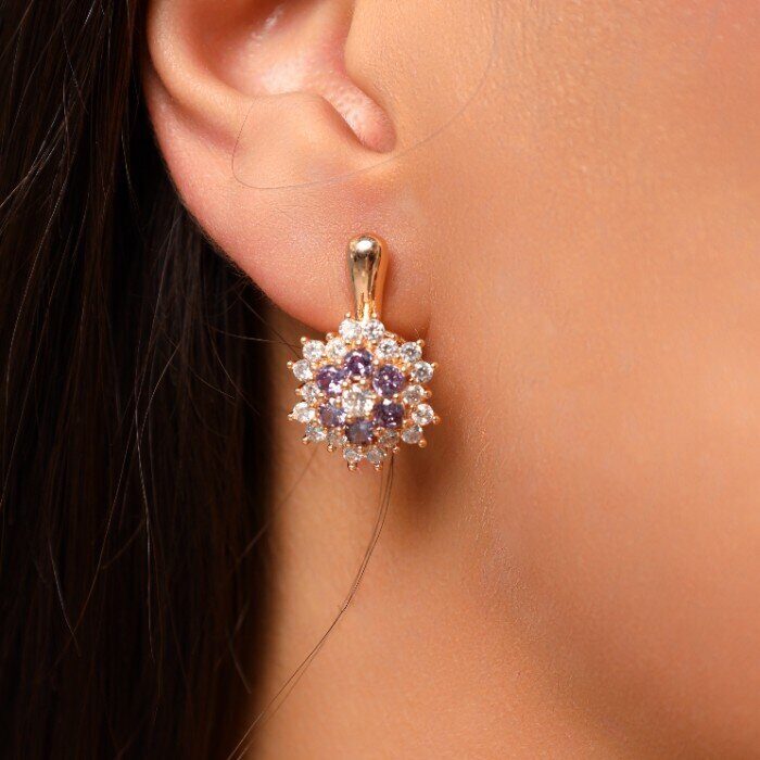 Серьги коллекция "Дубай" покрытие позолота, вставка: фианиты, цвет: сиреневый и прозрачный, 068, арт.214.538
