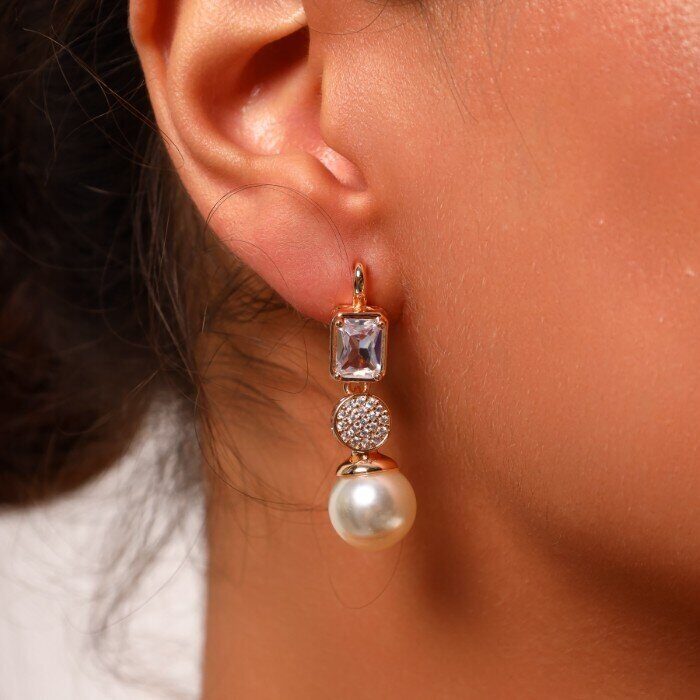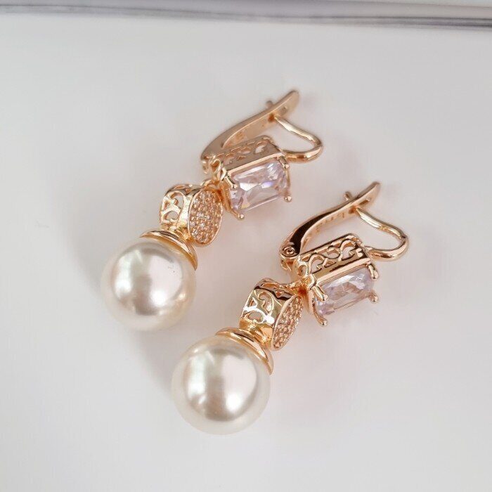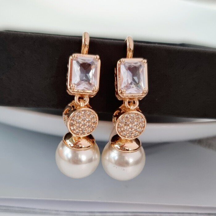 Серьги коллекция "Дубай", покрытие позолота, вставка: фианиты и иск. жемчуг, цвет: прозрачный, перламутровый, арт. 214.688