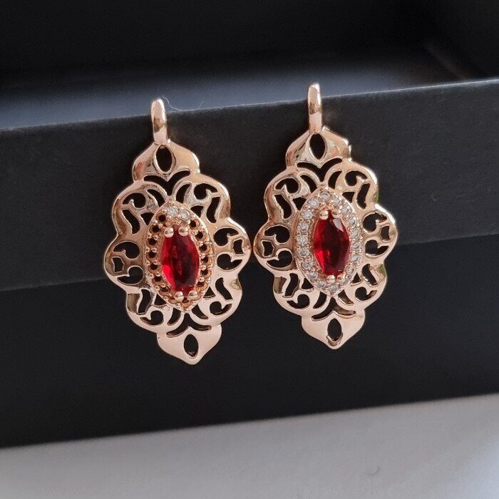 Серьги коллекция "Дубай" покрытие позолота, вставка: фианиты, камень цвет: красный, арт.214.266