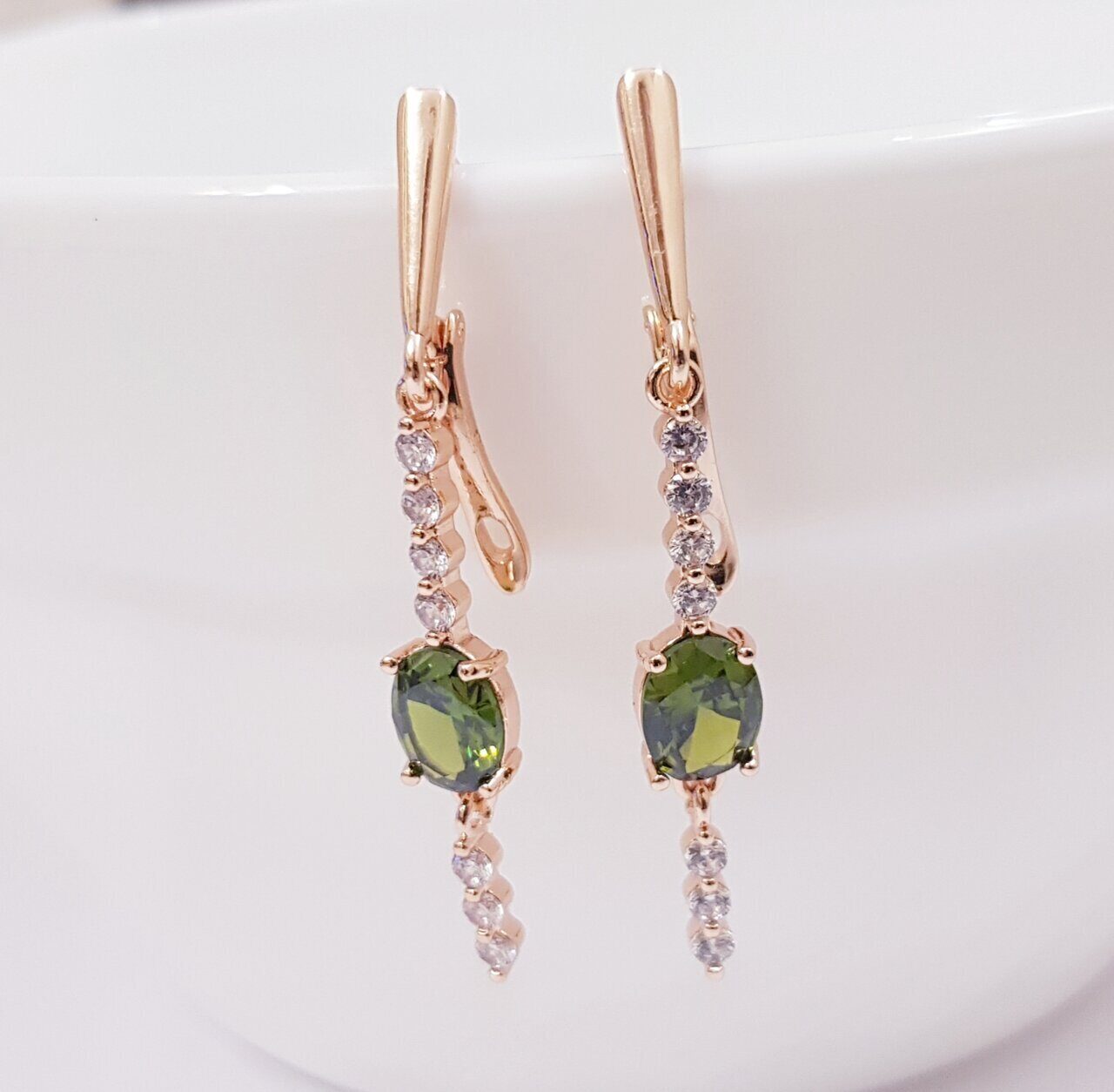 Серьги коллекция "Дубай" покрытие позолота, зелёный камень, 211201, арт.647.811