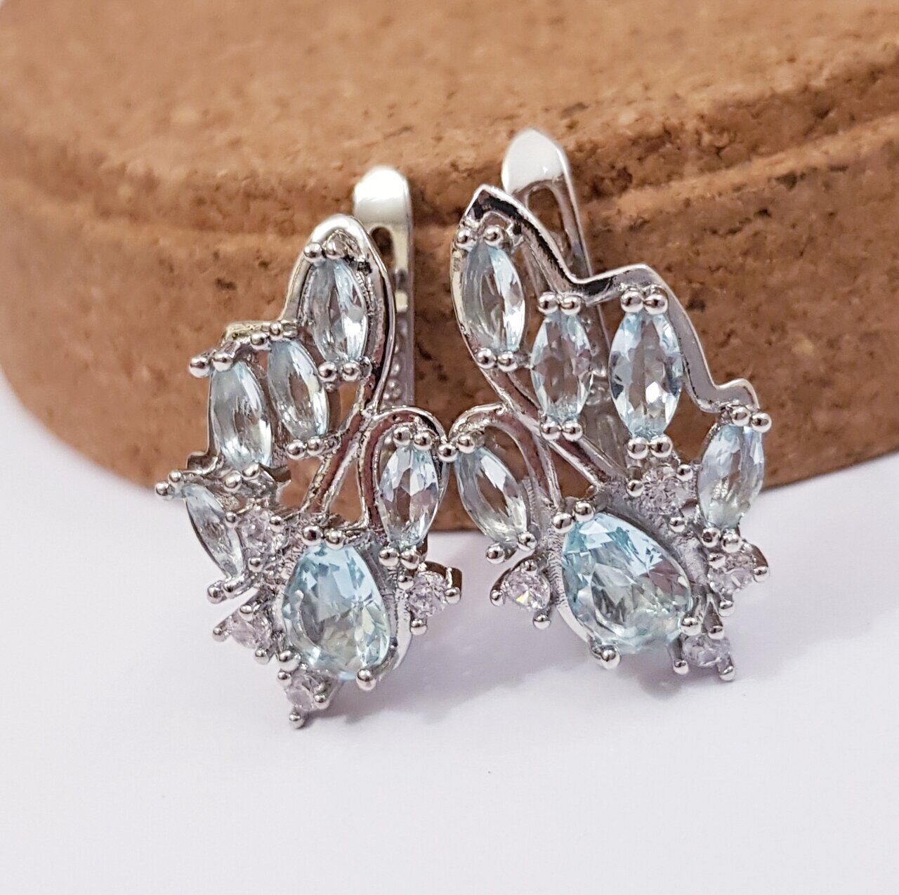 Серьги коллекция "Дубай" посеребрение, голубые камни, 1267, арт.647.463