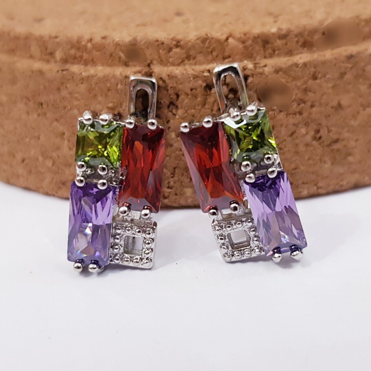 Серьги коллекция "Дубай" посеребрение, разноцветные камни, 1267, арт.647.469